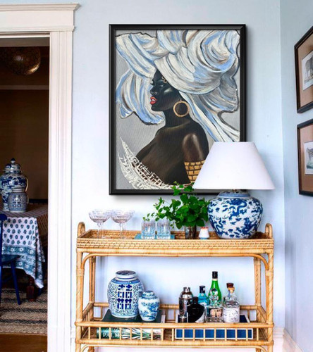 تابلو نقاشی، تابلو نقاشی میکس مدیا زن سیاه پوست۱۰٬۰۰۰٬۰۰۰ تومان