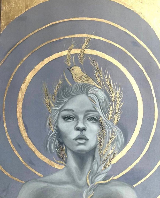 تابلو نقاشی، تابلو نقاشی میکس مدیا طرح دختر پاییز