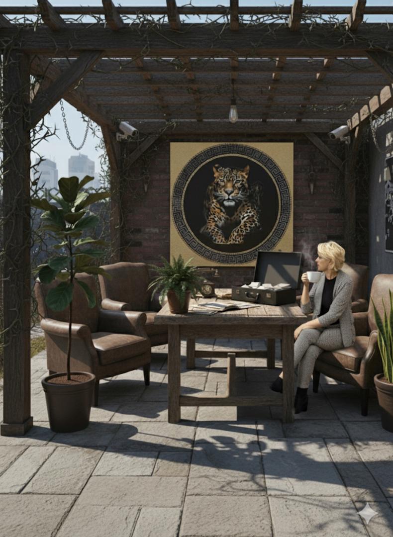 تابلو نقاشی، تابلو نقاشی میکس مدیا طرح پلنگ