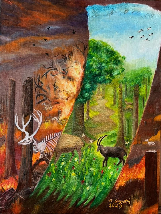 تابلو نقاشی، تابلو نقاشی مفهومی طرح آتشی در جنگل